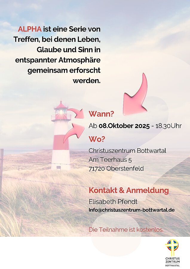 Wir freuen uns, dass Du unsere Seiten besuchst und wünschen Dir viel Freude beim Kennenlernen unserer Gemeinde, dem CHRISTUS ZENTRUM Bottwartal.